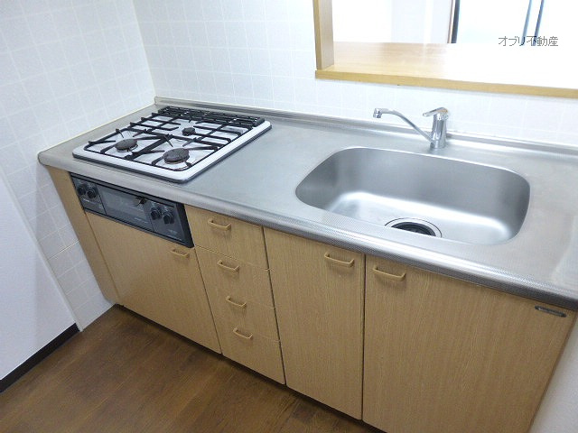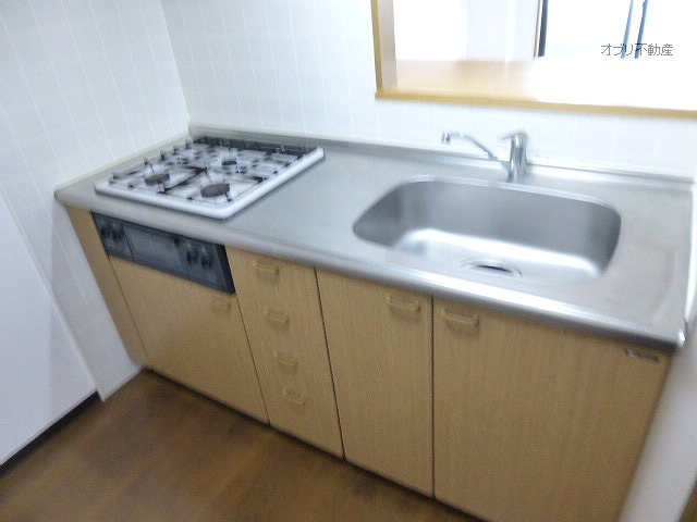 対面キッチンLDKでキッチンはガス3口システムキッチンでグリル付き・エアコン2基付。白子小学校まで徒歩2分。