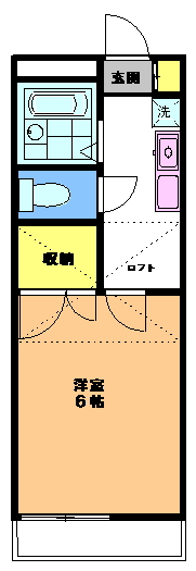 バストイレ別ロフト付1Kコーポ!ロフト上収納ありの1Kコーポ。駅からは距離は離れてますが、コンビニ「ローソン」まで徒歩2分です。